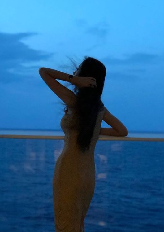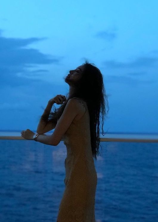 공개된 사진 속 지연은 바다가 내려다보이는 풍경을 배경으로 화려한 아름다운 드레스 자태를 뽐내고 있다. 몸에 밀착되는 드레스이기에 그의 극세사 몸매가 한층 더 부각되는 모습이다.
