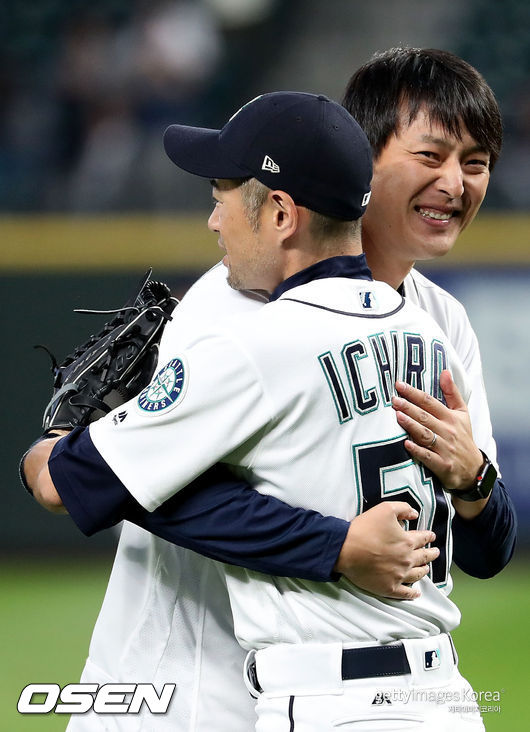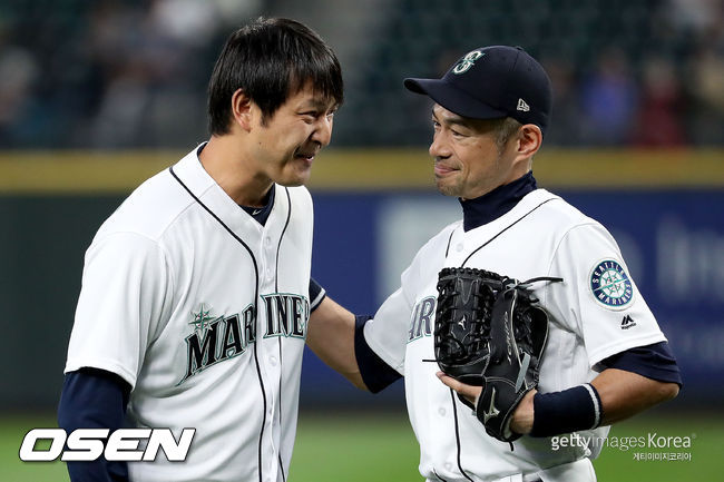 메이저리그 생활을 마감하고 일본 무대 복귀를 선언한 이와쿠마 히사시가 27일(한국시간) 미국 시애틀 세이프코필드에서 열리는 오클랜드 애슬레틱스전 시구자로 나섰다. 아직 은퇴를 하지 않은 현역 선수가 시구를 하는 건 매우 이례적인 일이다. 그리고 시포는 스즈키 이치로 구단 회장 특보가 맡았다.