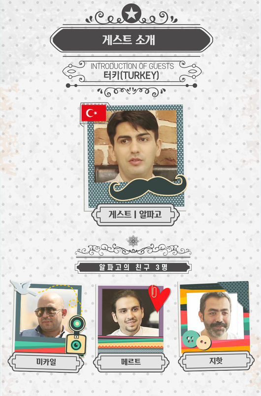 이날 방송된 ‘어서와 한국은 처음이지’ 터키 1편에서는 한국 거주 터키인 알파고의 엘리트 친구 3인이 한국에 방문해 한국 문화를 경험하고 친구 알파고와 조우하는 장면이 방송됐다. 터키편 친구들은 의사, 변호사, IT 기업 CEO로 구성된 터키 내 엘리트들로 작은 것 하나에도 분석적이고 문화를 받아들이는데 있어서 학구적인 모습을 보이는 등 색다른 캐릭터를 지녔다. 엘리트 출신답게 세 친구들은 한국에 대해 많은 정보를 풀어내는가 하면 뚜렷한 목표를 가지고 한국으로 여행을 떠났다.