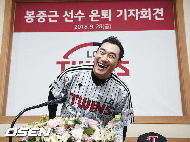 봉중근은 28일 잠실구장에서 기자회견을 갖고 12시즌 LG 선수 생활을 마쳤다. LG 홈 유니폼 위에 유광 점퍼까지 입고 기자회견장에 들어선 봉중근은 미안하다는 말을 되풀이했다. 그는 "LG에서 많은 사랑을 받으며 은퇴할 수 있어 영광"이라며 "앞으로 어떻게든 LG를 돕겠다"고 했다.