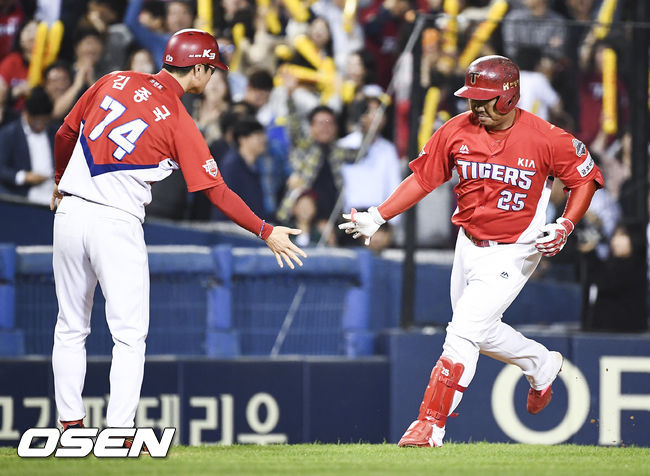 이범호는 "중요한 만루 상황이라 병살만 치지 말자는 생각을 했다. 상대 투수의 커브와 커터가 좋아 존을 높게 보고 타석에 들어간 것이 결과가 좋았다"며 "만루라고 해서 홈런을 생각하지는 않는다. 어떻게 해서든 타점을 내려고 하는데, 종종 결과가 좋을 뿐이다"고 말했다.