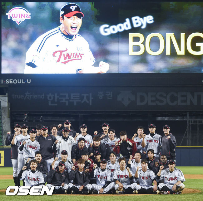 봉중근은 마운드에서 마이크를 잡고 팬들을 향해 "어렸을 때부터 좋아한 LG 유니폼을 입고 신나게 야구를 했습니다. 오늘이 선수로서 마지막이라 아쉽지만 후회는 없습니다. 우승을 하지 못해 죄송하지만, 후배들이 반드시 이뤄줄 것이라 믿습니다. 팬들이 주신 사랑과 응원의 목소리는 영원히 간직하겠습니다"고 작별인사를 했다.