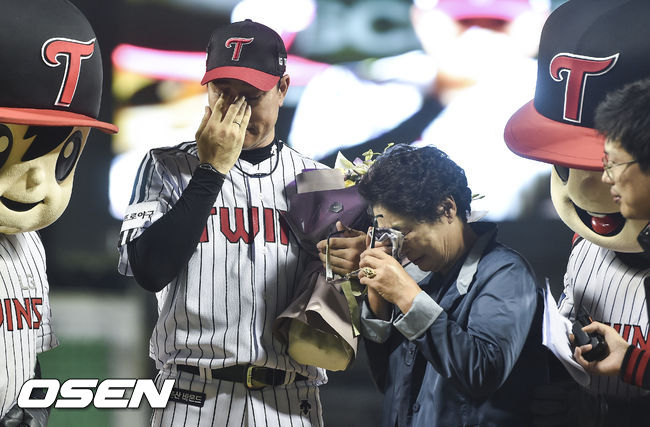 봉중근은 28일 잠실구장에서 열린 KIA와의 경기 후 은퇴식을 갖고 작별 인사를 했다. 경기 전 시구자로 나선 봉중근은 경기 후 은퇴식 주인공으로 그라운드에 나섰다.