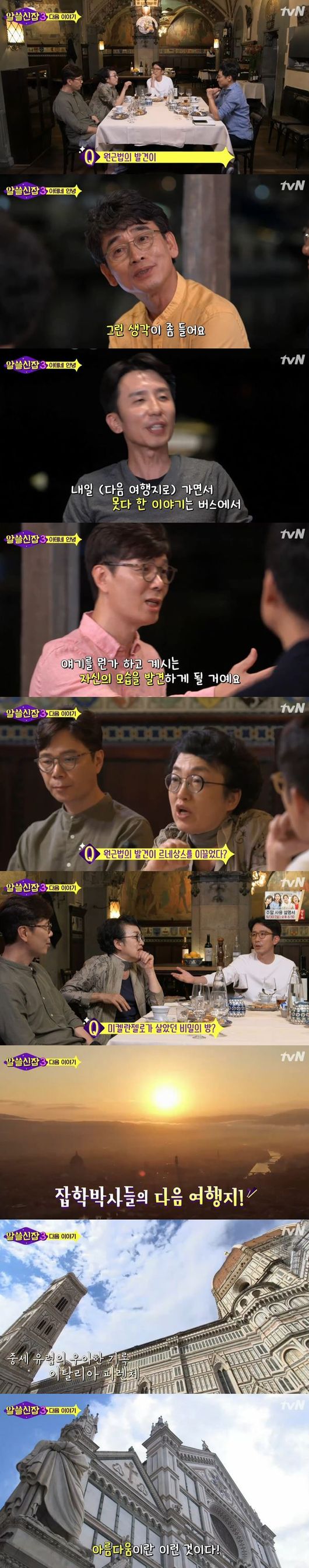 28일 방송된 tvN 예능 '알아두면 쓸데없는 신비한 잡학사전3'(이하 알쓸신잡3)에서는 그리스의 크레타 섬, 에기나 섬, 살라미스 섬, 델피 등을 살펴보는 MC 유희열과 잡학박사 유시민, 김영하, 김진애, 김상욱의 모습이 전파를 탔다.