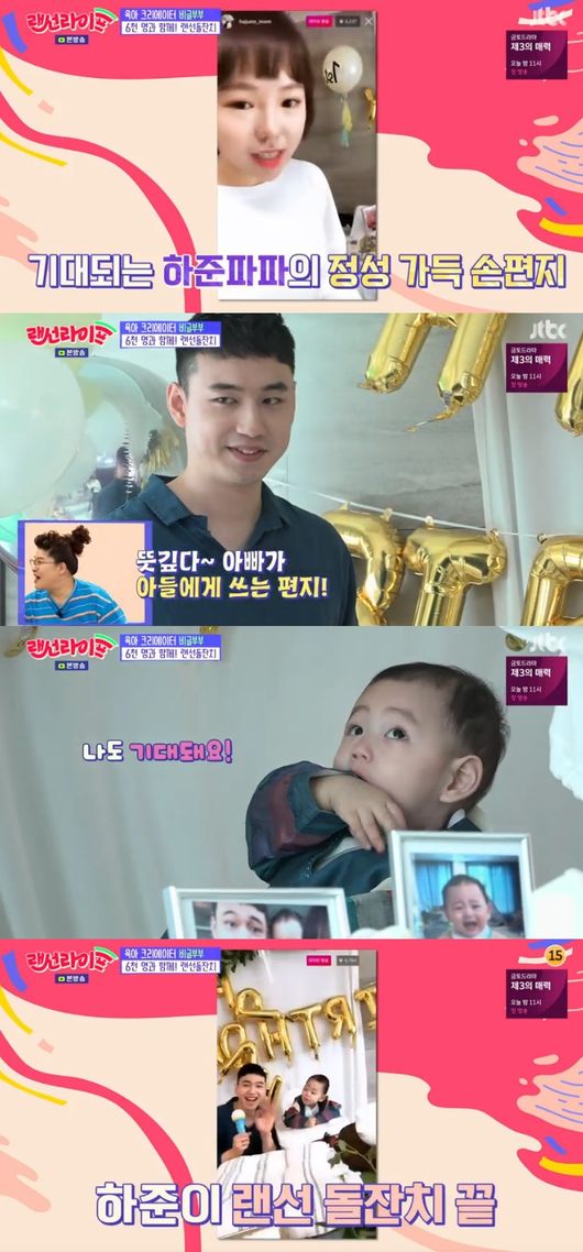 지난 28일 오후 방송된 JTBC '랜선라이프'에선 육아 크리에이터 비글부부가 하준이의 돌을 맞아 실시간 방송을 진행했다.