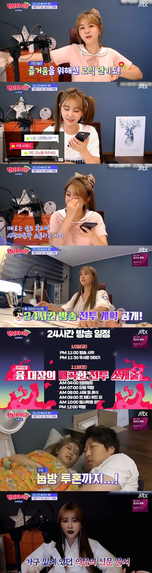 지난 28일 오후 방송된 JTBC '랜선라이프'에선 윰댕이 24시간 생방송에 도전했다.