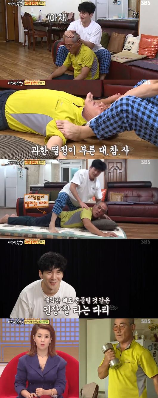 마지막은 발 안마였다. 발 뒤꿈치로 꾹꾹 눌러야 했는데 권해성은 긴장한 나머지 장인의 등에 아예 올라탔다. 온몸으로 긴장한 터라 권해성은 후들거리는 다리를 주체하지 못했다. 영상을 보며 아내 윤지민은 부끄러워했다.