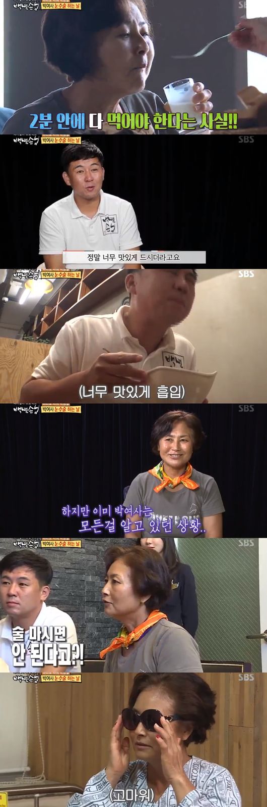 마라도 박여사는 눈 수술을 앞두고 금식을 해야했다. 두 사람은 아침에 늦잠을 자서 호텔 조식을 제대로 먹지 못했다. 박사위는 칼 같이 장모의 금식 시간을 지켰고 자신도 같이 굶겠다고 자신했다.