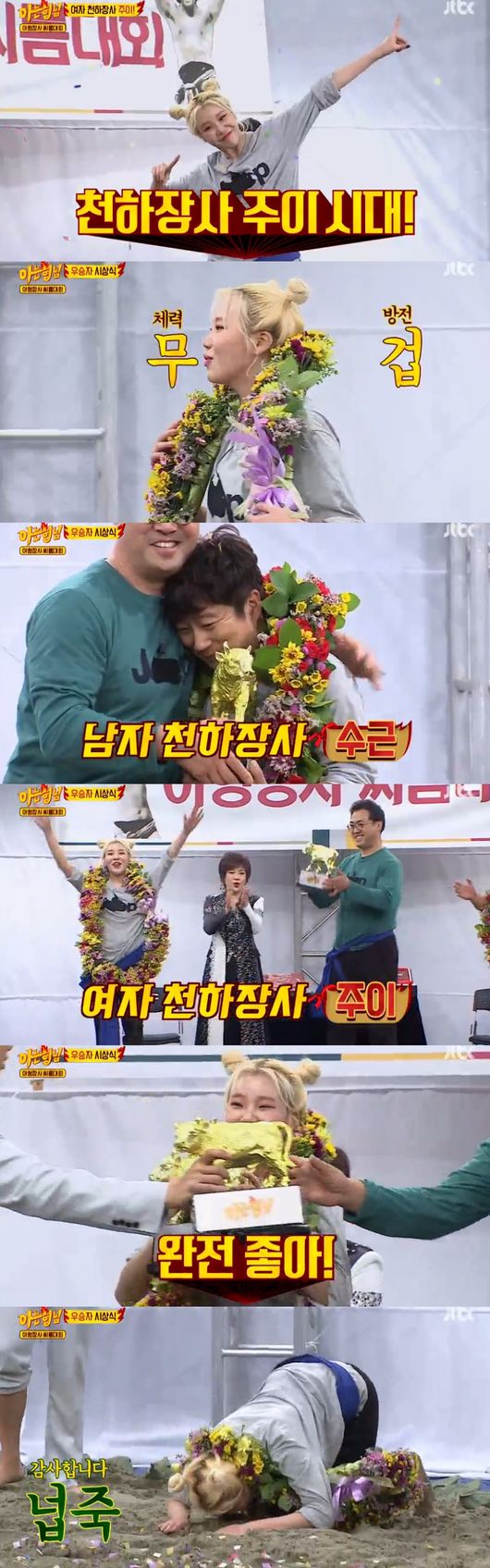 이수근과 주이가 남녀 천하장사로 등극했다.
