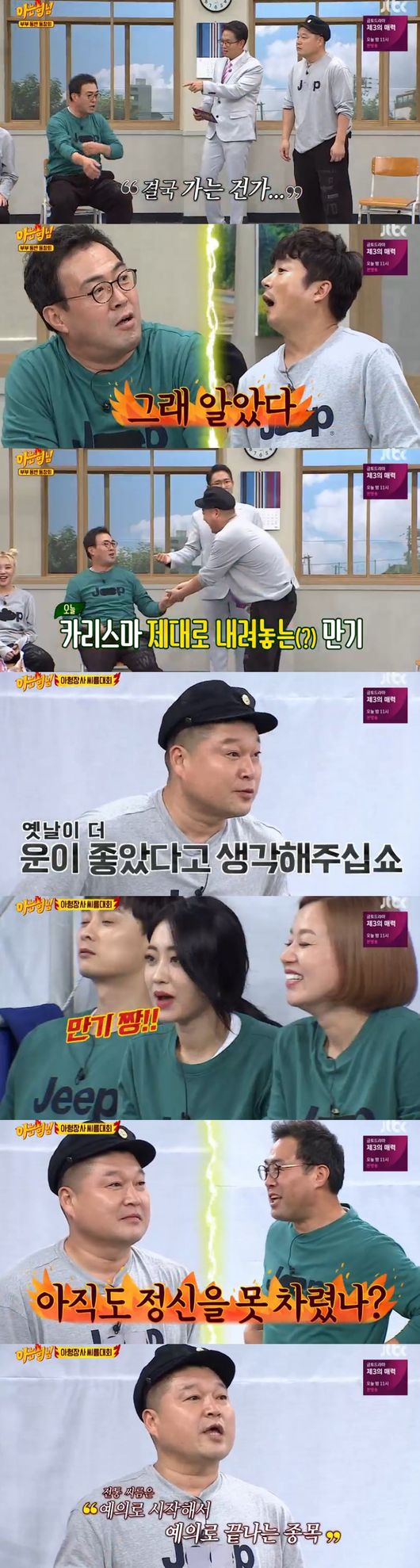 이 분위기를 몰아 이수근은 "둘이 싸워봐라"면서 자존심을 건 씨름 재대결을 부추겼다. 강호동은 "우리도 가자"라면서 이만기와 씨름장으로 이동하자고 했다. 이수근이 "네가 가라"고 하자, 이만기는 "알았다"라고 대답, 카리스마 제대로 내려놓은 순종적인 모습으로 웃음을 안겼다. 반전 콩트의 신이었다.