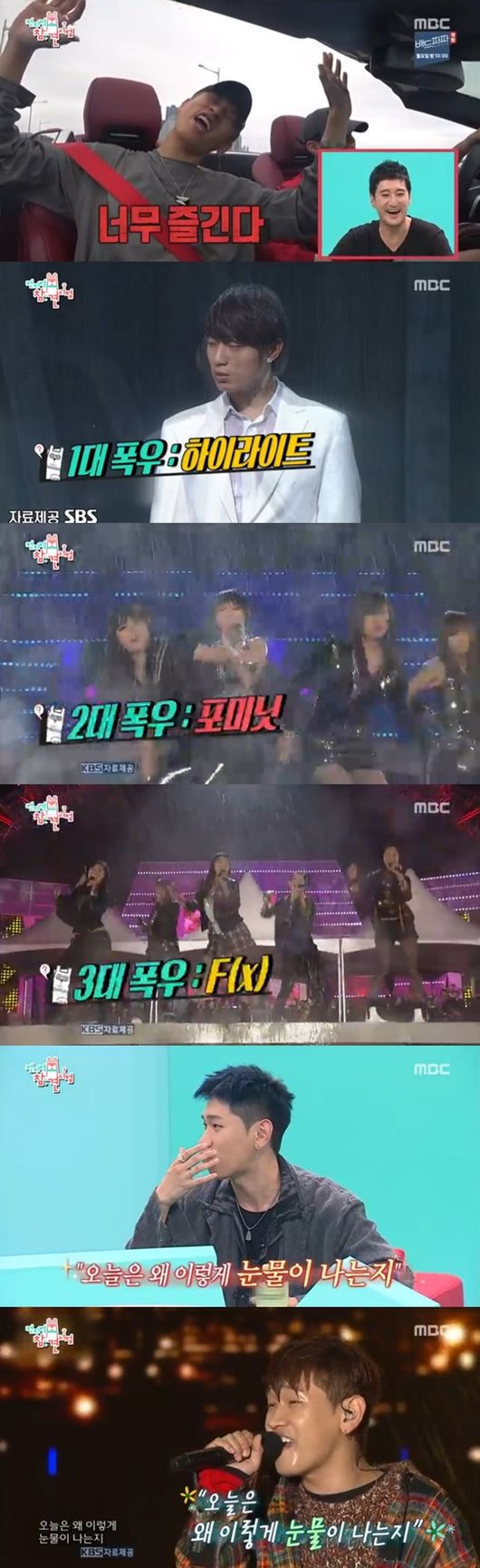이들은 현수 매니저의 고향인 부산을 함께 찾았다. 오픈카를 타고 부산의 공기를 즐기던 두 사람은 내리는 비 때문에 당황했다. 크러쉬는 "내가 비를 몰고 다니는 남자다. 연예계 4대폭우라는 게 있는데, 하이라이트, 포미닛, 에프엑스, 그리고 나다. 비가 많이 오는 날 노래를 부르는데 하필 눈물 닦는 내용의 가사에 내가 눈을 닦아서 짤이 유명해졌다"고 말해 웃음을 자아냈다. / yjh0304@osen.co.kr