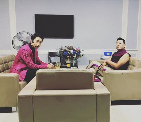 비는 30일 자신의 인스타그램에 "우리형, 내 형, 동네 형, 재상이형. 10년 뒤에도 PSY RAIN"이라는 글과 함께 한 장의 사진을 게재했다.