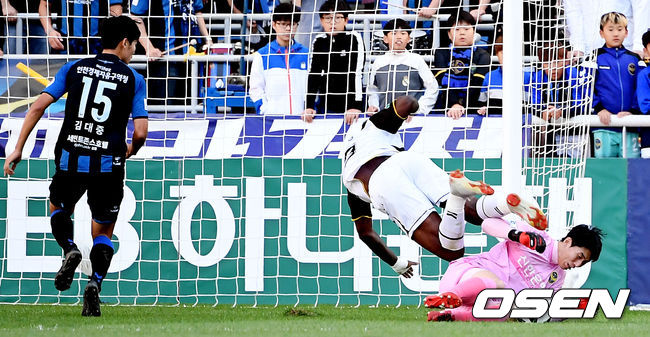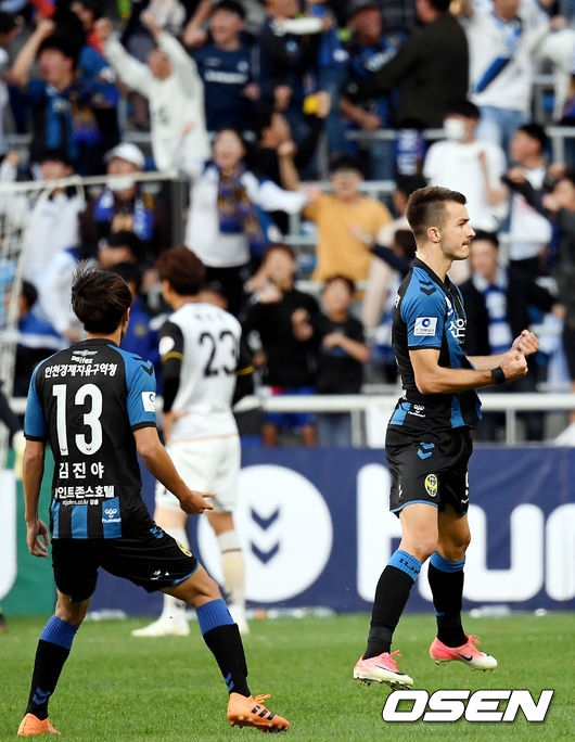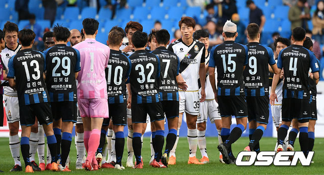 결국 인천은 후반 35분 아길라르가 날카로운 프리킥으로 만회골을 터트렸다. 인천은 계속 경남의 수비진을 두들겼다. 결국 후반 43분 무고사가 문선민의 침투패스를 받아 침착하게 밀어 넣으며 균형을 맞췄다.
