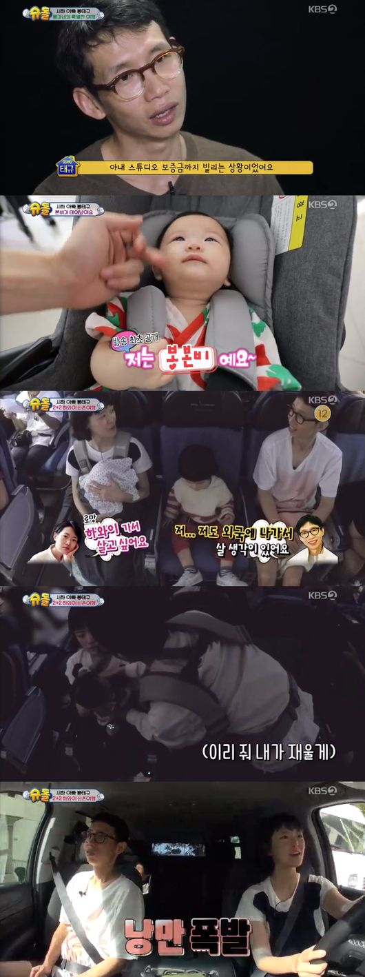 하지만 하와이까지 가는 길이 쉽지는 않았다. 하와이까지 가는데 비행시간이 긴데다 둘이 아니라 넷인 만큼 봉태규와 하시시박은 시하와 본비가 칭얼대면 안아서 달래주고 재워야했다. 봉태규는 아내가 힘들까봐 비행기에서 한숨도 못자고 두 아이를 번갈아 돌봤다.
