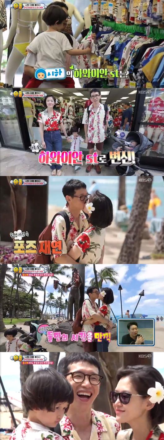 이에 봉태규 가족은 둘째 딸 본비를 낳고 하와이로 신혼여행을 떠났다. 하시시박은 “우리 둘이 가려고 했는데 네 명이 됐다”며 “하와이를 이런 식으로 가게 될 줄 몰랐다. 오빠 처음 만났을 때 하와이 가서 살고 싶다고 했었다. 그런데 오빠가 외국에서 살 생각이 있다고 했다”고 말했다. 봉태규는 “그때는 잘 보이고 싶어서 그렇게 얘기한 거다”며 신혼여행의 달달함을 풍겼다.