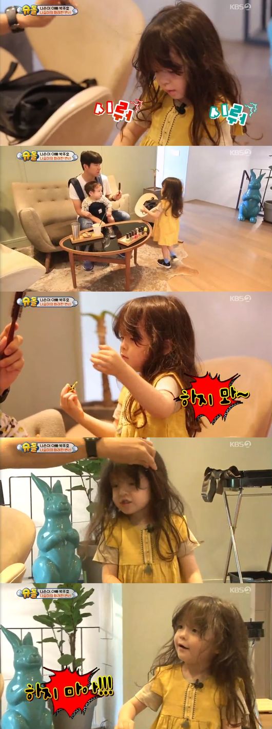 박주호가 미용실에 간 이유는 길게 자란 나은이의 앞머리를 자르기 위해서였다. 평소 머리 만지는 걸 싫어해 머리카락도 자르지 못할 정도였다. 머리를 빗으려고만 하면 나은은 “하지마”라며 피했다.