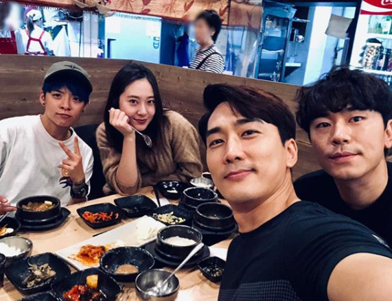 공개된 사진 속에서 송승헌은 함께 드라마 '플레이어'에 출연 중인 가수겸 배우 정수정(크리스탈), 배우 이시언, 그리고 드라마 촬여을 응원하러 온 fx 멤버 엠버와 함께 다정하게 식사를 나누며 흐뭇한 미소를 짓고 있다. 특히 함께 걸그룹 fx로 활동했던 엠버와 크리스타의 우정이 눈길을 끈다.