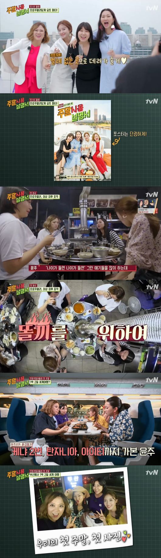 30일 오후 첫 방송된 tvN 예능 ‘주말 사용 설명서’에서는 일명 ‘프로 주말러’로 선정된 김숙, 라미란, 장윤주, 이세영이 포스터 촬영을 하고 여행을 떠나는 과정이 담겼다.