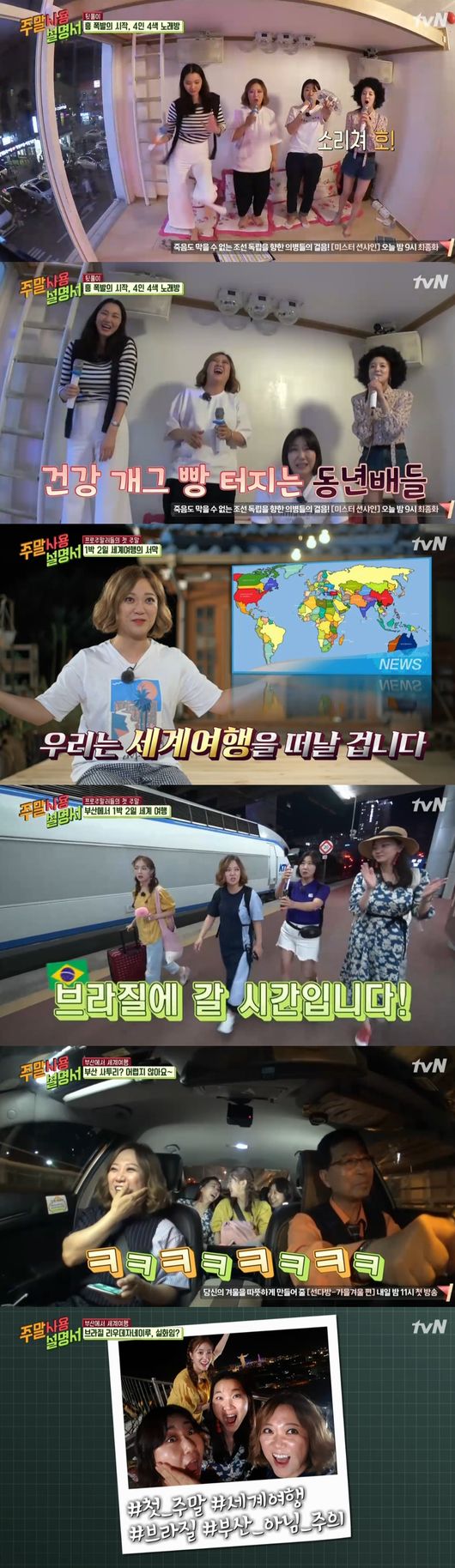 이에 김숙은 멤버들에게 “1박2일 동안 세계 여행을 가겠다”고 예고했고 이튿날 서울역에서 만났다. 결국 부산행 KTX에 몸을 실은 것이다. 네 사람은 6인분에 해당하는 식사를 마친 뒤 일관된 주제가 없는 신변잡기적인 대화를 이어나갔다.