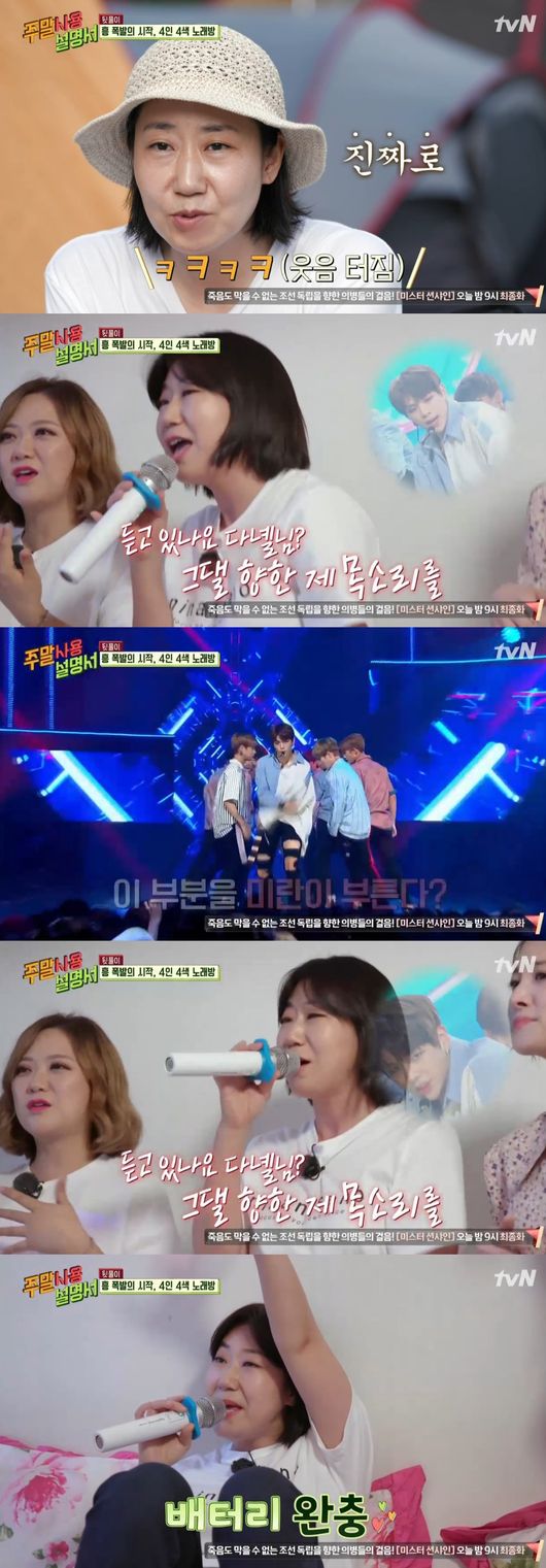 30일 오후 첫 방송된 tvN 예능 ‘주말 사용 설명서’에서 라미란은 ‘프로 주말러’ 김숙, 장윤주, 이세영과 함께 노래방에서 주말을 보내며 강다니엘에 대한 애정을 고백했다.