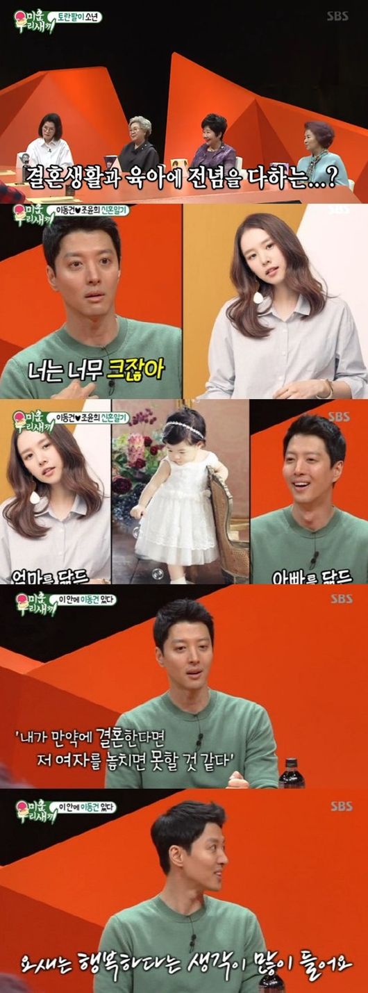 이동건은 서로 어떤 애칭을 사용하냐는 질문에 조윤희가 자신을 "베이비"라고 부르라고 강요했다며 "아이만 예뻐하는 제 모습을 보고는 질투심을 느낀 것 같다"며 여전한 애정을 보였다. 실제로 이동건은 딸 로아를 향한 애정도를 드러냈다. 그는 "딸이 제 눈매를 꼭 닮았다"면서 딸 바보의 모습을 보였다.