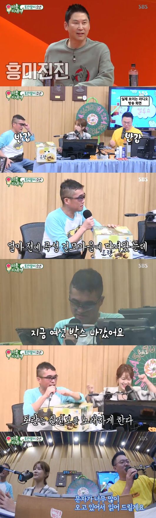 김건모는 급기야 생방 중인 스튜디오로 조심스럽게 입장했다. 컬투쇼였다. 생방 중 예고없이 토란을 들고 나왔다. 김건모는 "오랜만에 라디오다, 앨범을 낸건 아니지만 곡성에서 토란을 가져왔다"면서 홍보에 나서 웃음을 안겼다. 토란맨이 된 김건모는 콘서트를 홍보하면서 콘서트에서도 토란을 팔겠다고 선언해 웃음의 쐐기를 박았다. 급기야 토란 판매를 위해 즉석 라이브까지 선보이는 모습이 방송에 재미를 더했다.