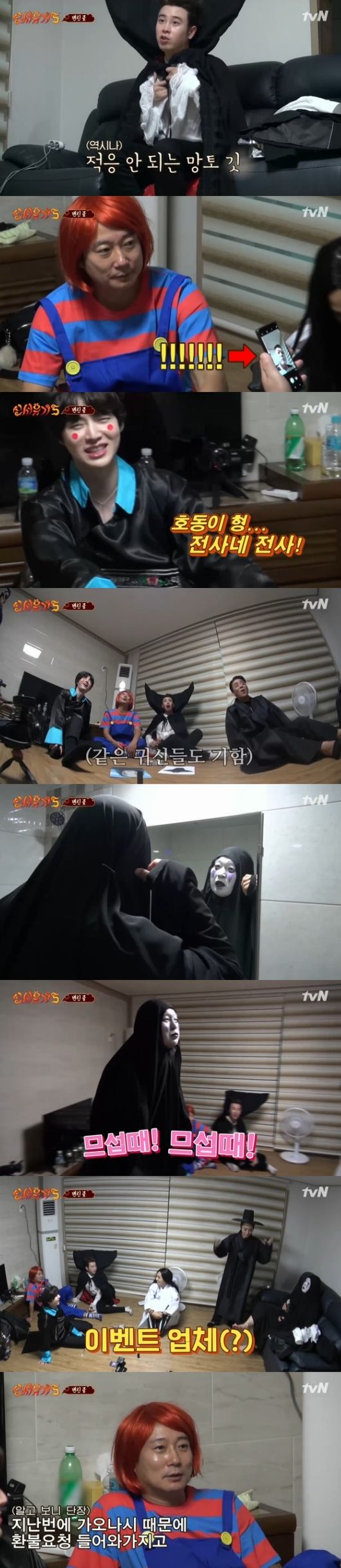 분장을 마치고 모인 '신서유기5' 멤버들의 모습은 마치 이벤트 업체 직원들을 연상케 했고, 얼굴 전체를 하얗게 펴바른 강호동은 "무섭대, 무섭대"라고 외쳤다. 이에 은지원은 "형 얼굴이 그런데 어떡해", 이수근은 "지난 번에 가오나시 때문에 환불요청 들어왔다"고 말해 웃음을 자아냈다.