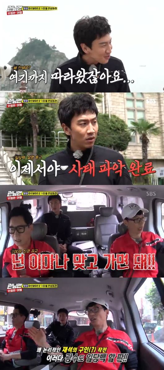 지난주 게임에서 승리한 이광수는 휴가 팀으로 합류해야 했으나 유재석의 소환으로 이마를 두 대를 맞기 위해 부산으로 향했다. 이광수는 어처구니 없는 부산행으로 인해 당황스러움을 감추지 못했다.