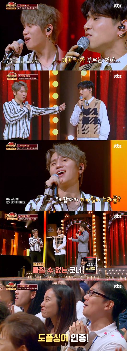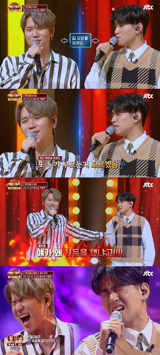케이윌과 ‘오늘부터 케이윌’ 정한의 무대도 놀라웠다. ‘오늘부터 케이윌’은 앞서 케이윌과의 대결에서도 높은 싱크로율을 보이며 시청자들을 놀라게 했던 바다. 케이윌이 ‘오늘부터 케이윌’이 노래하는 걸 립싱했을 때도 케이윌이 불렀다는 착각이 들 정도로 두 사람의 목소리는 똑같았다.