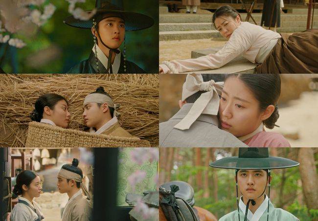 어릴 적 벚꽃 아래에서 혼인을 약조했던 이율(도경수 분)과 윤이서(남지현 분). 반정이 일어나면서 율은 왕세자로, 이서는 과거를 숨긴 송주현 마을 최고령 원녀 연홍심으로 살아가게 됐다. 16년간 이서를 그리워하던 율은 이서의 모습 그대로 한양에 올라온 홍심과 벚나무 아래에서 마주쳤다. 하지만 김차언(조성하 분)의 암살 계획으로 천우산에서 화살을 맞고 기억을 잃은 원득으로 전락하여 홍심 앞에 나타났다. 1회에서 서로를 떠올리며 애틋함과 아련함을 남겼던 율과 이서가 2회에서는 마치 운명의 장난처럼 원득과 홍심으로 다시 만나는 순간이었다.