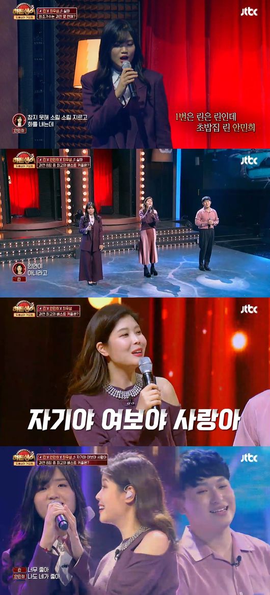 초밥집 린 안민희의 노래가 린과 비슷했기에 다들 속을 수 밖에 없었다. 왕중왕전에 이어서 안민희는 또 한 번 뛰어난 가창력을 뽐냈다.
