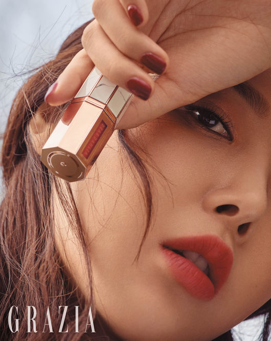 뿐만 아니라 촬영에 착용한 주얼리는 모두 다이아몬드가 세팅돼 고급스러운 룩을 완성시켰으며 올 가을 트렌드인 깊이 있는 와인빛 레드 컬러의 벨벳 립을 더해 대담하고 관능적인 분위기를 연출했다.