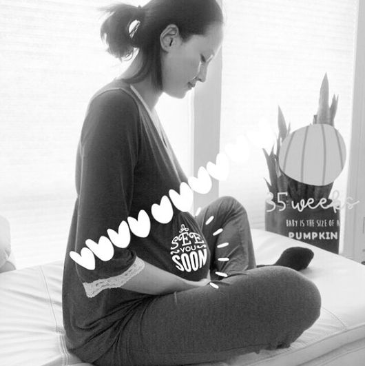 혜박은 "오랜만에 주 수 사진. 사진 by 서방. 임신 35주 차"라는 글과 함께 한 장의 사진을 공개했다. 만삭의 배를 안고 있는 혜박의 온화한 모습이 인상적이다.