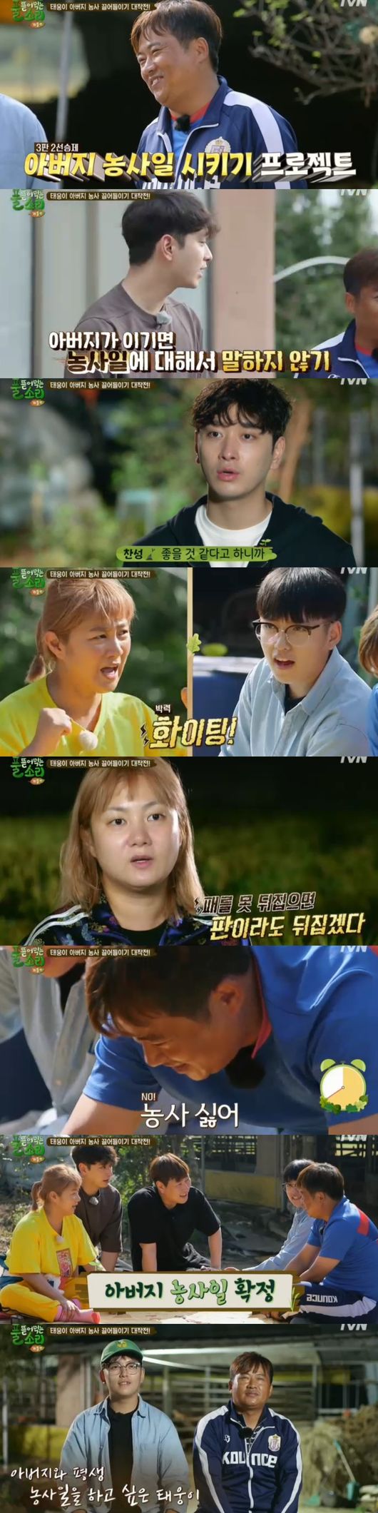 태웅은 농벤져스 형들에게 지훈을 만났던 일화를 전했다. 특히 지훈네 아버지가 함께 농사하는 것이 부러웠다고.이 분위기를 몰아, 농벤져스들은 오늘 일은 아버지와 함께 일하자고 했다. 태웅은 "환영이다, 하지만 아버지는 하고 싶지 않아한다"고 했다. 직접 전화를 걸어, 父에게 선물핑계를 댔다. 박나래의 꼬임으로 父가 승낙했다.