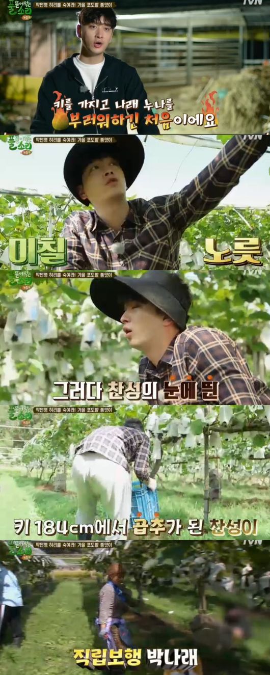 나래는 "정말 수월했다, 포도따는거 쉬었다"고 말해 웃음을 안겼다. 이와 달리, 장신 찬성은 나래를 부러워해 웃음을 안겼다.