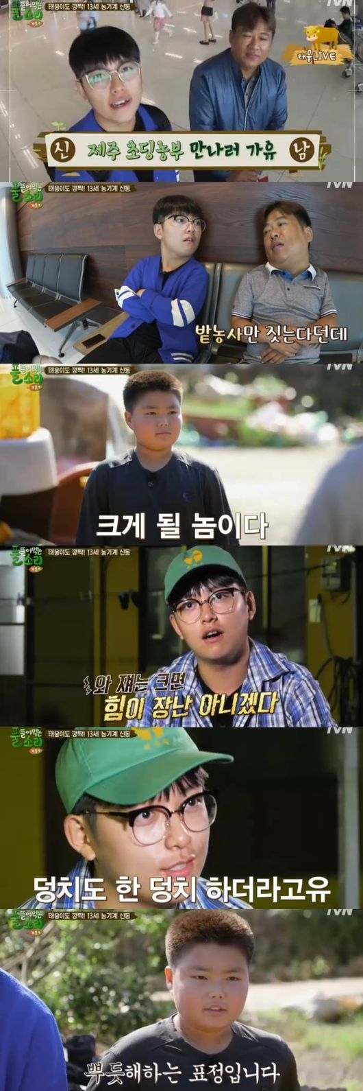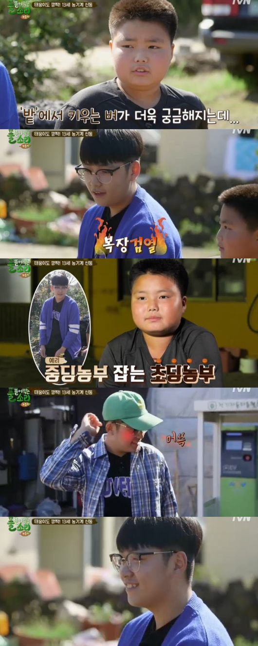 1일 방송된 tvN 예능 '풀 뜯어먹는 소리-가을편'에서는 초딩농부 지훈을 찾아간 태웅의 모습이 그려졌다.