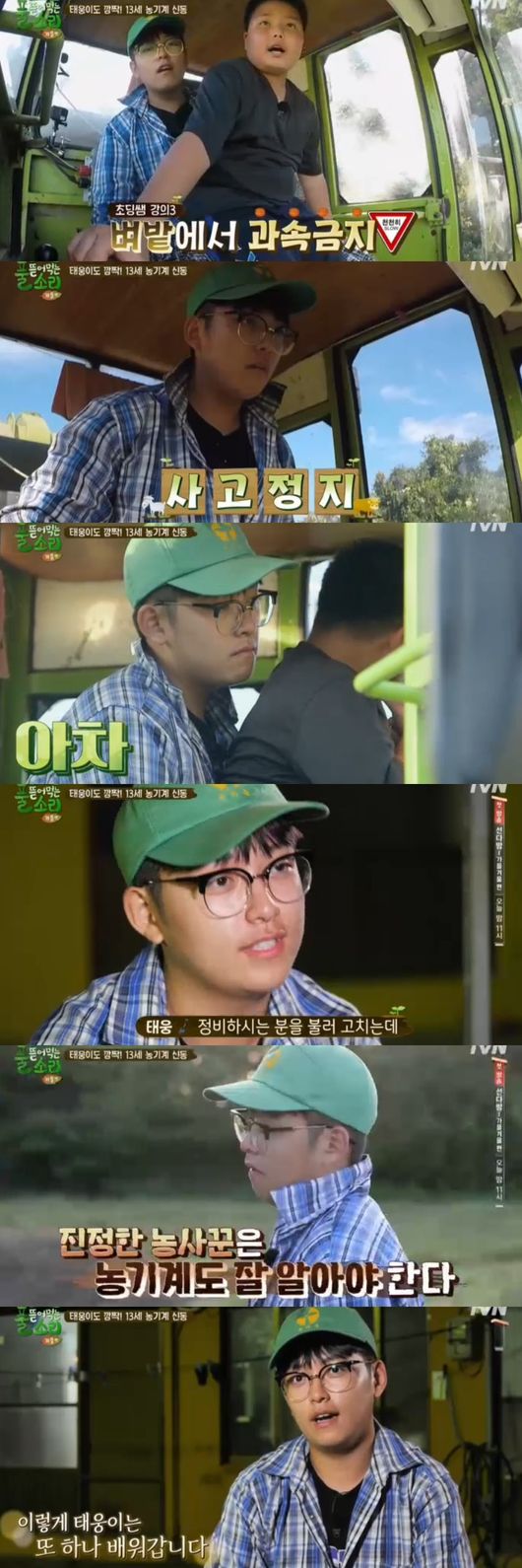 지훈은 태웅이 몰던 트랙터보다 더 큰 대형 트랙터를 끌었다. 태웅은 "제 소원이었다, 정말 배울 게 만핬다"며 입을 다물지 못했다. 지훈의 지도하에 태웅이 대형 트랙터를 직접 몰았다. 태웅은 지훈에게 계속해서 허락을 받으며 기계를 몰아 웃음을 안겼다.