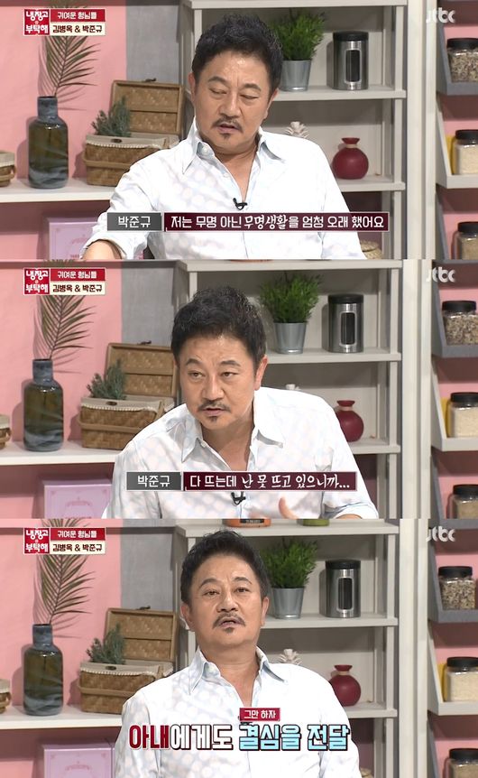 이어 박준규는 “저는 무명 아닌 무명기간이 길어서 배우 생활을 포기하려고 했었다. 옛날부터 아버지보다 유명한 배우가 되고 싶었지만 그렇게 되기 힘들었다. 결국 '아버지 반만 따라 가자'는 생각을 했지만 결국 그렇게 되지 못한 거 같다. 그래서 연기자 생활을 포기하려고 했었다”고 털어놨다.