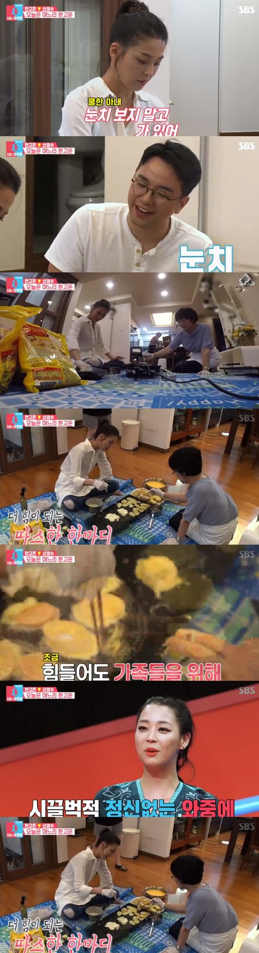 한고은 전 부치기에 매진했다. 시어머니도 함께 와서 한고은을 도왔다.