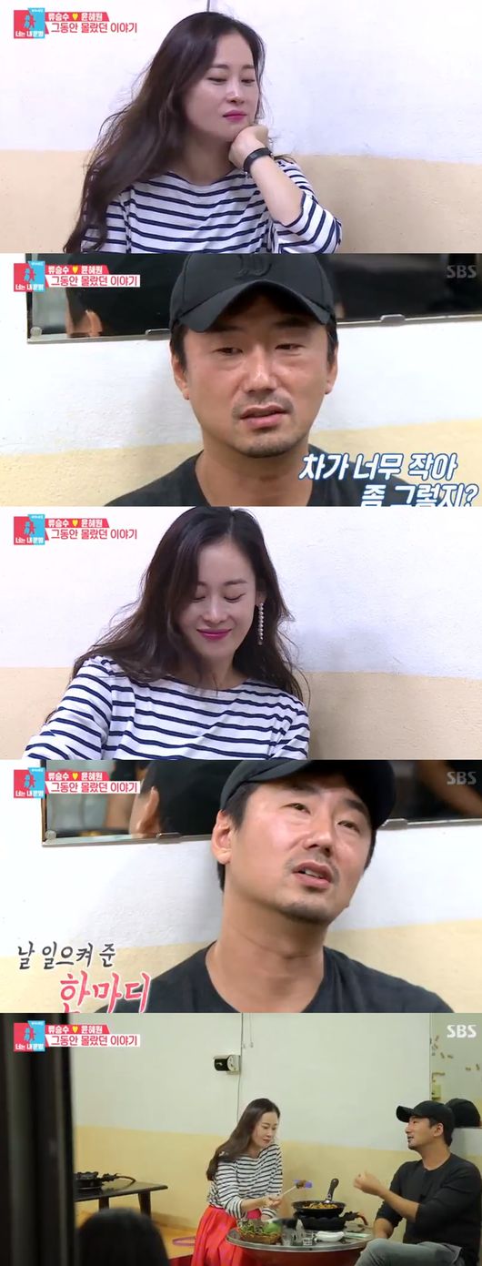 류승수는 아내에게 "내가 가장 힘들 때 구세주 같은 힘이 됐다. 인생에 가장 큰 실패를 했을 때, 큰 차를 타다가 아주 작은 차를 탔다. 그때 되게 스스로 작아지고 그럴 때 차가 좀 작지 그랬는데 '안에서 똑같아. 밖에서 보면 다르지' 그 말이 와 정말 그랬다. 돈 안 벌어줘도 되니까 하고 싶은 일 해 그랬는데 매달 생활비를 정기적으로 주지 못하잖아 그런 압박감을 안 주니까 고맙지"라고 말했다.