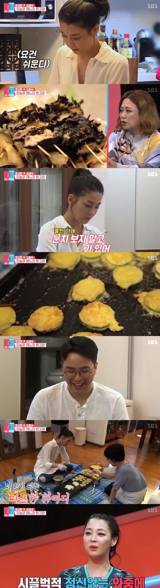 한고은 해산물 꼬치를 만드는데 이어 전 부치기에 매진했다. 시어머니도 함께 와서 한고은을 도왔다.