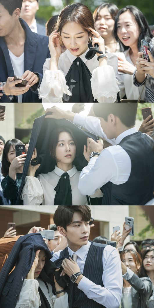 공개된 사진 속 한세계는 무방비로 인파에 둘러싸여 난감한 상황에 처해 있다. 쏟아지는 호기심 어린 시선과 카메라 세례에 어쩔 줄 모르는 한세계의 앞에 백마 탄 왕자처럼 나타난 서도재. 그는 재킷으로 한세계를 철통 보호하며 인파 사이에서 한세계를 단번에 구해낸다. 자신이 위기에 처할 때마다 흑기사처럼 나타나는 서도재에게 놀란 한세계는 혼란스러운 표정이다. 그런 한세계의 흔들림에 아랑곳하지 않고 무심한 듯 시크하게 그녀를 보호하는 서도재의 모습이 심장 멎는 설렘을 유발한다. 철저한 비즈니스로 엮인 두 사람이 어떤 이유로 길 한복판에서 설렘 무드를 발산하고 있는지 호기심을 불러일으키고 있다.