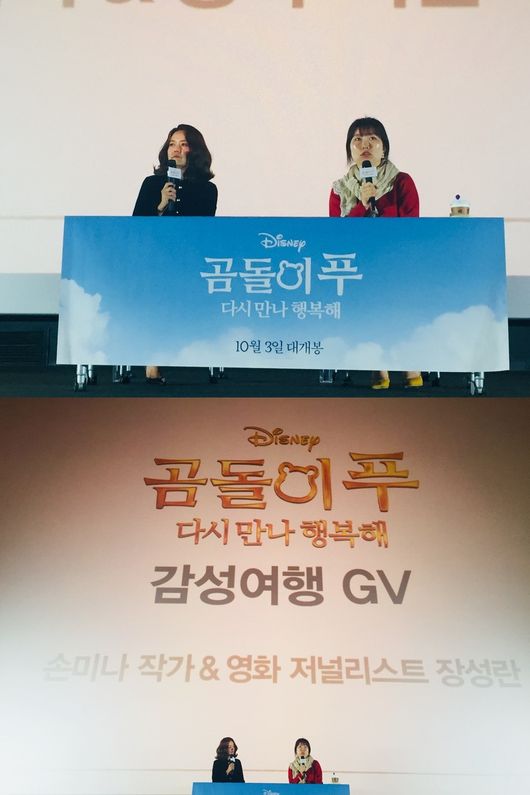 벌써부터 따뜻한 감성충전 영화로 관객들의 기대를 한 몸에 받고 있는 '곰돌이 푸 다시 만나 행복해'의 이번 행사에서 손미나 작가, 장성란 영화 저널리스트와 함께하는 감성여행토크를 통해 영화만큼이나 소중한 인생의 미학과 담론, 질의응답이 오갔다.