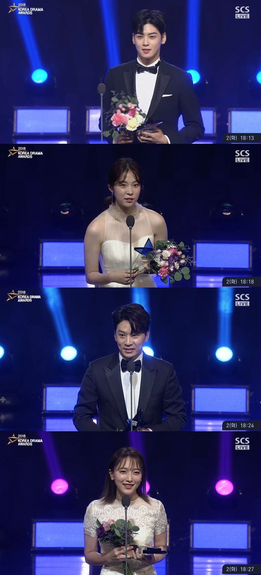 생애 딱 한 번만 받을 수 있다는 신인상은 JTBC 드라마 '내 아이디는 강남미인' 차은우, '황금빛 내 인생' 서은수에게 돌아갔다.