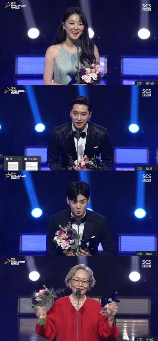 다음은 2018 코리아드라마어워즈 전체 시상자(작)이다.