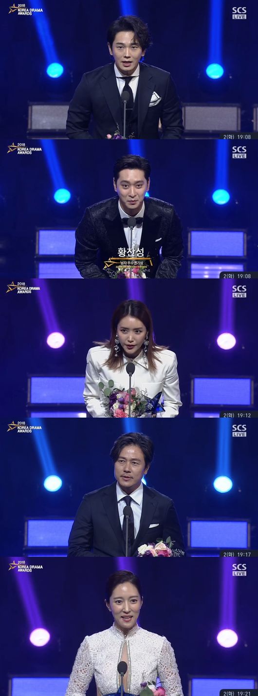 남자우수연기상은 '김비서가 왜 그럴까' 황찬성, '밥상 차리는 남자' 온주완, 여자우수연기상은 '슈츠'의 채정안에게 돌아갔다. 남자 최우수연기상은 '키스 먼저 할까요'의 감우성이 수상했다. 감우성은 "저희와 함께 뜨거운 눈물 흘려주신 시청자 분들께 감사하다. 성장하는 배우 되겠다"고 말했고, 왕빛나는 "늘 좋은 에너지를 줄 수 있는 사람이 되고 싶다. 배우가 돼서 그런 기회를 갖게 된 것 같아서 자랑스럽다. 감사하다"고 말했다.
