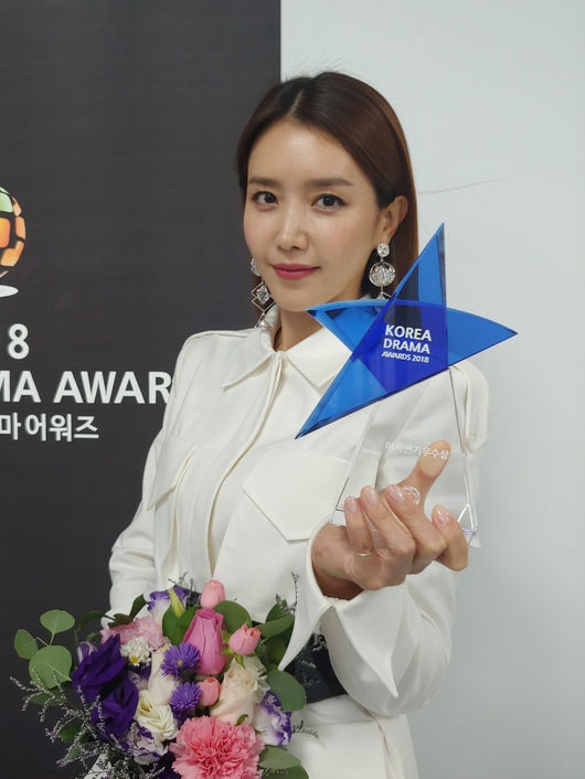 지난 2일 진주시 경남문화예술회관에서 열린 ‘2018 코리아 드라마 어워즈(Korea Drama Awards)’에서 여자우수상의 수상영광을 안은 배우 채정안이 트로피 인증샷을 공개하며 눈부신 미모를 자랑했다.