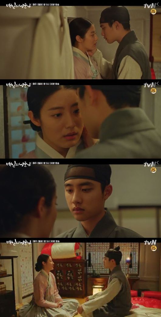 이날 방송에서는 주민들의 도움에 홍심(남지현 분)과의 합방을 시도하는 원득(도경수 분)의 모습이 그려졌다. 아름다운 보리밭에서 홍심에게 줄 꽃신을 사서 기다리고 있던 원득은 의문의 화살이 날아오자 홍심과 함께 몸을 피했다. 두 사람은 이를 박영감(안석환 분)의 짓이라 생각했지만 이는 홍심의 친오빠이자 세자 이율(도경수 분)을 죽이려 했던 살수 무연(김재영 분)의 짓이었다.