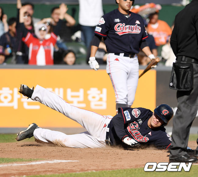 이어 손아섭이 샘슨의 초구 직구를 통타, 좌중간 가르는 2타점 2루타로 역전했다. 전준우의 2루 땅볼로 계속된 1사 3루에선 이대호의 투수 옆 느린 땅볼 때 3루 주자 손아섭이 홈인하며 롯데가 5-2로 달아났다.