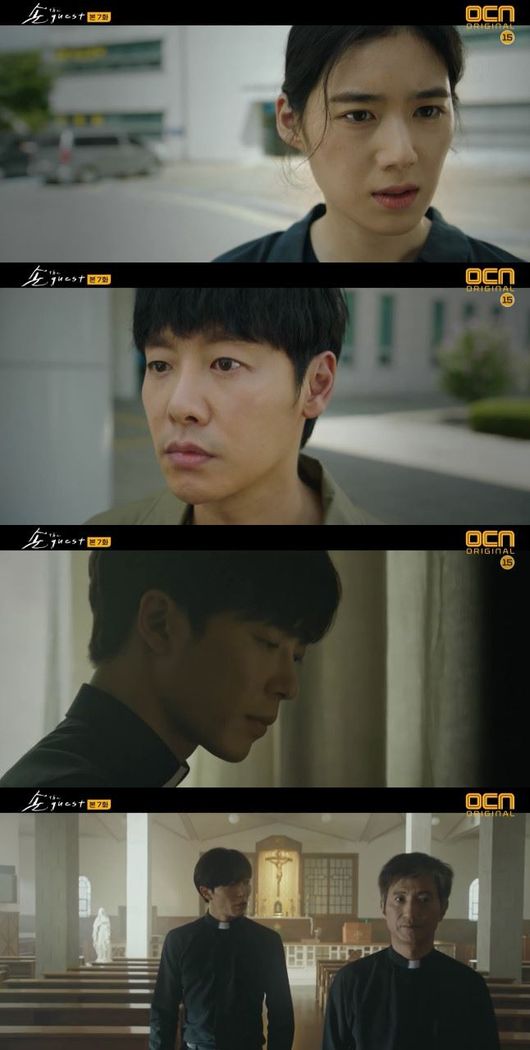 3일 방송된 OCN 수목드라마 '손 the guest'(극본 권소라 서재원/ 연출 김홍선) 7회에서는 박홍주(김혜은 분)의 수상한 행보를 의심하는 윤화평(김동욱 분), 최윤(김재욱 분), 강길영(정은채 분)의 모습이 그려졌다.